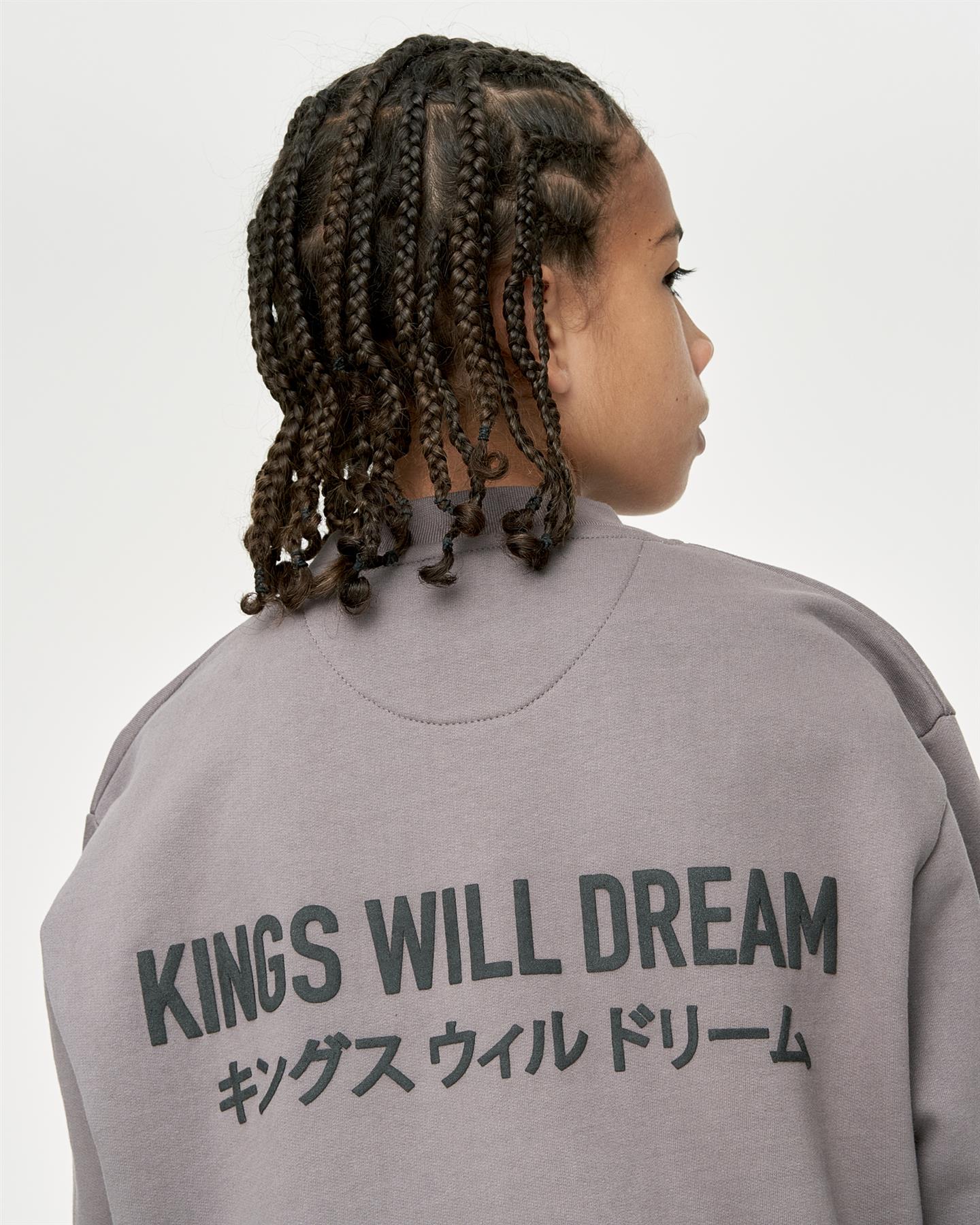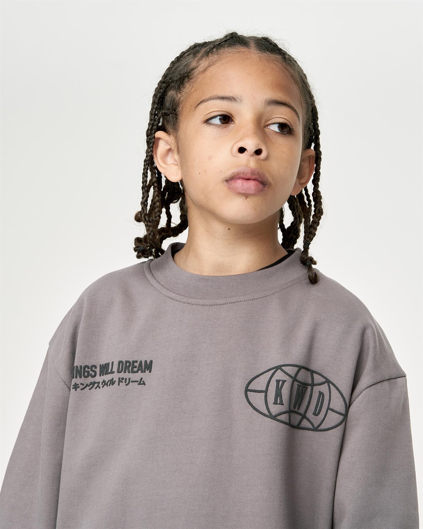 Introducing the Kids Studio Duo Line Crew Sweatshirt a cotton brush back crew with a deep neck rib and drop shoulders for an oversized fit. It features a raised puff print on the chest and back for a textured look. Explore more from the collection here.