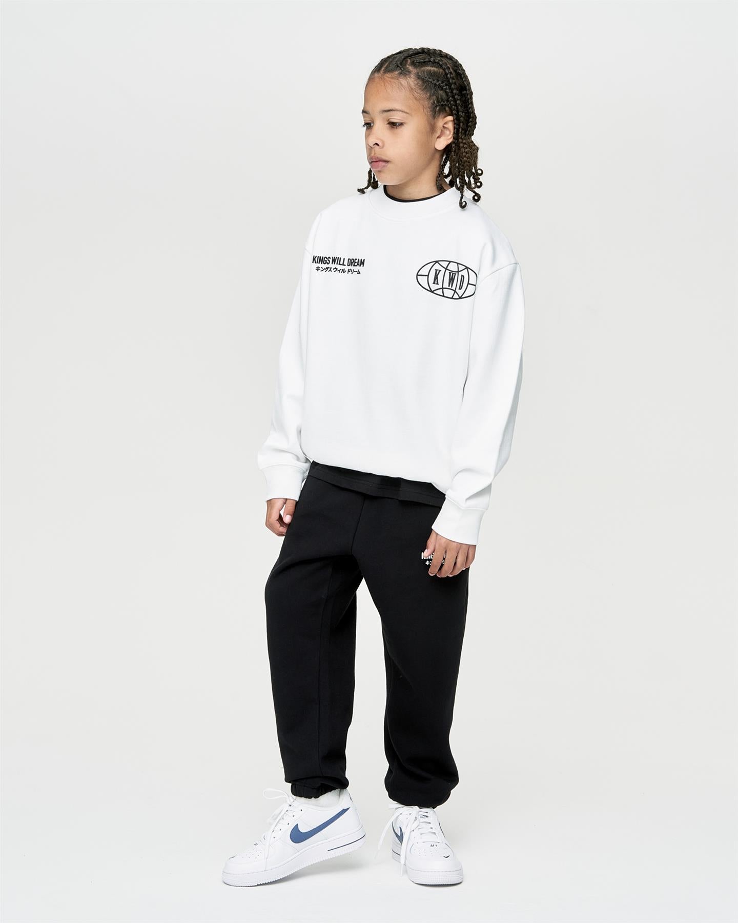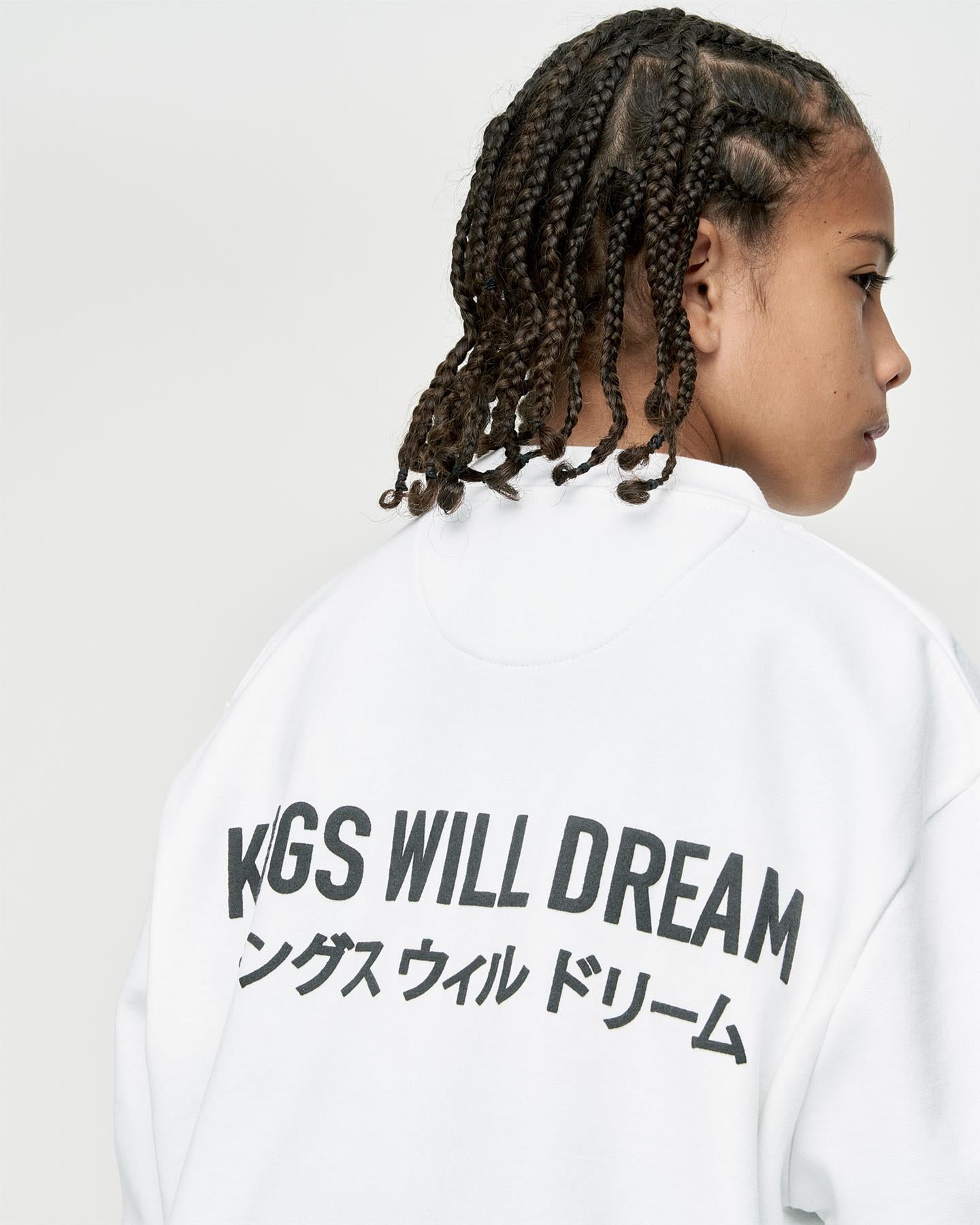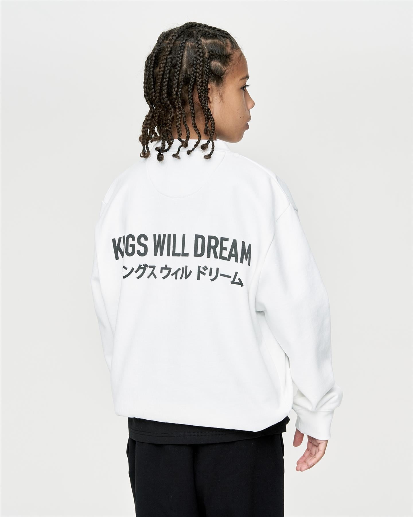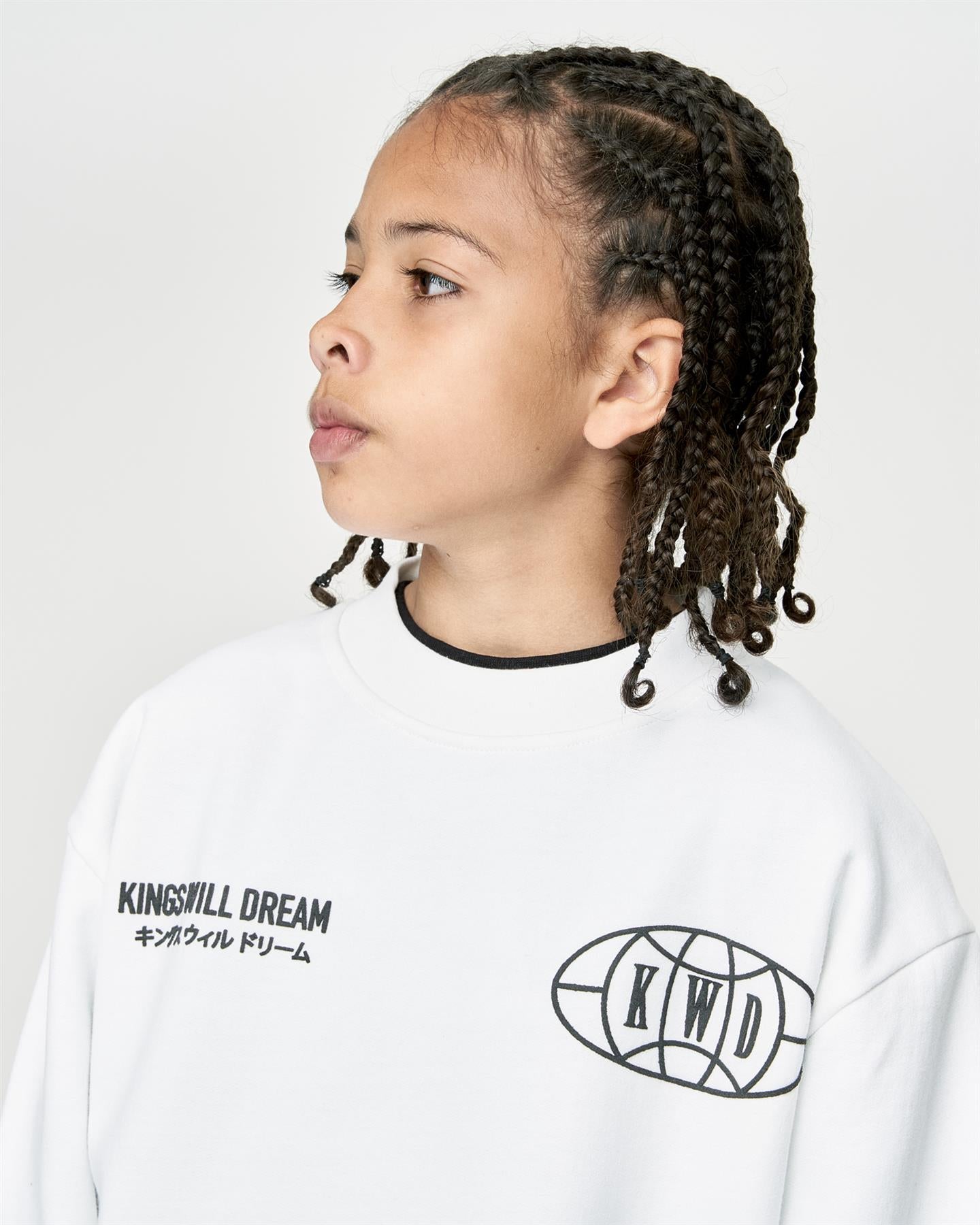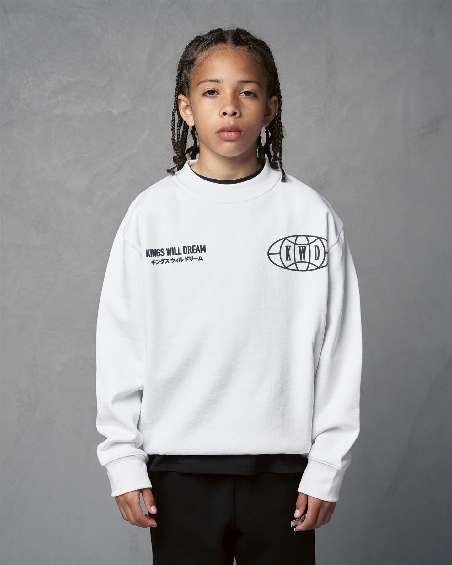 Introducing the Kids Studio Duo Line Crew Sweatshirt a cotton brush back crew with a deep neck rib and drop shoulders for an oversized fit. It features a raised puff print on the chest and back for a textured look. Explore more from the collection here.