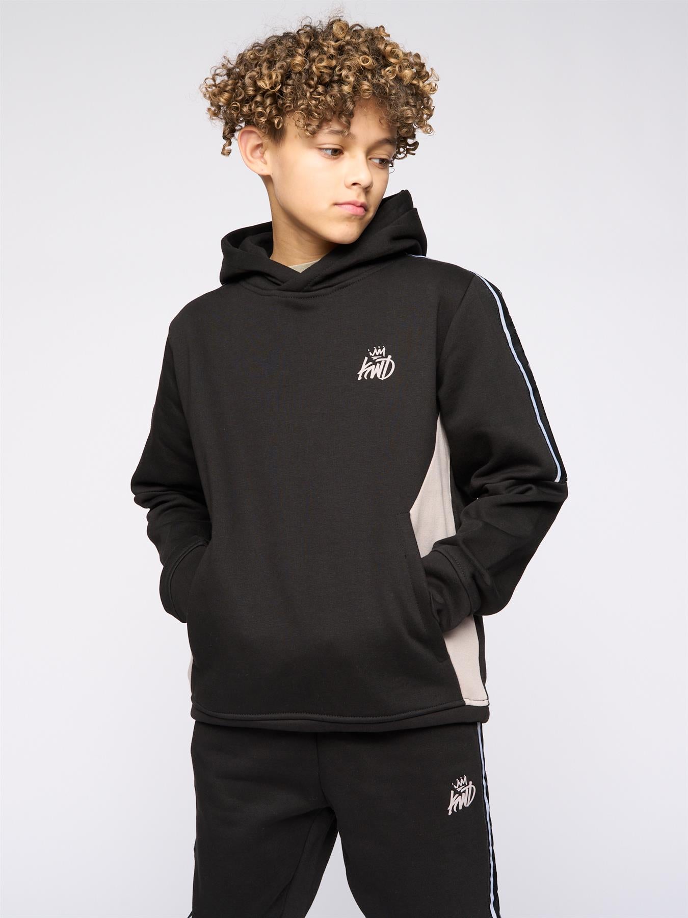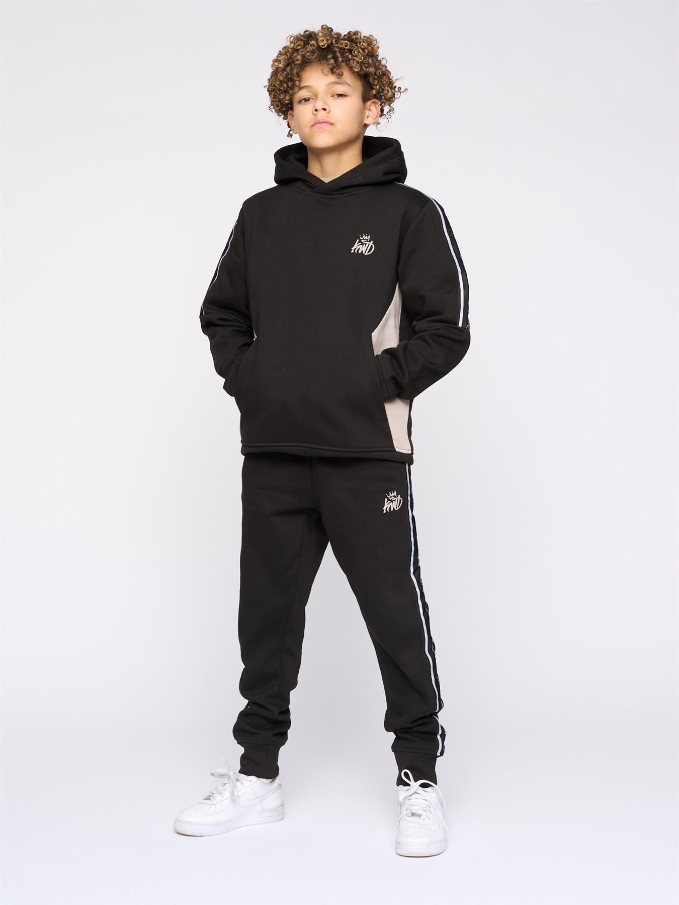 Introducing the Techy Taped Tracksuit, a kids� cotton-poly brushback fleece set designed for comfort and style. This colour-blocked overhead hoody features contrast logo woven tape along the sleeves for a premium look. An elasticated waistband for a secure and comfortable fit. Perfect for casual wear or sports activities, this tracksuit combines a modern aesthetic with everyday practicality.