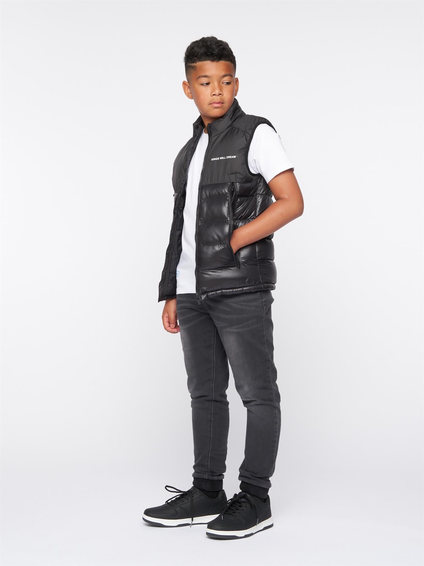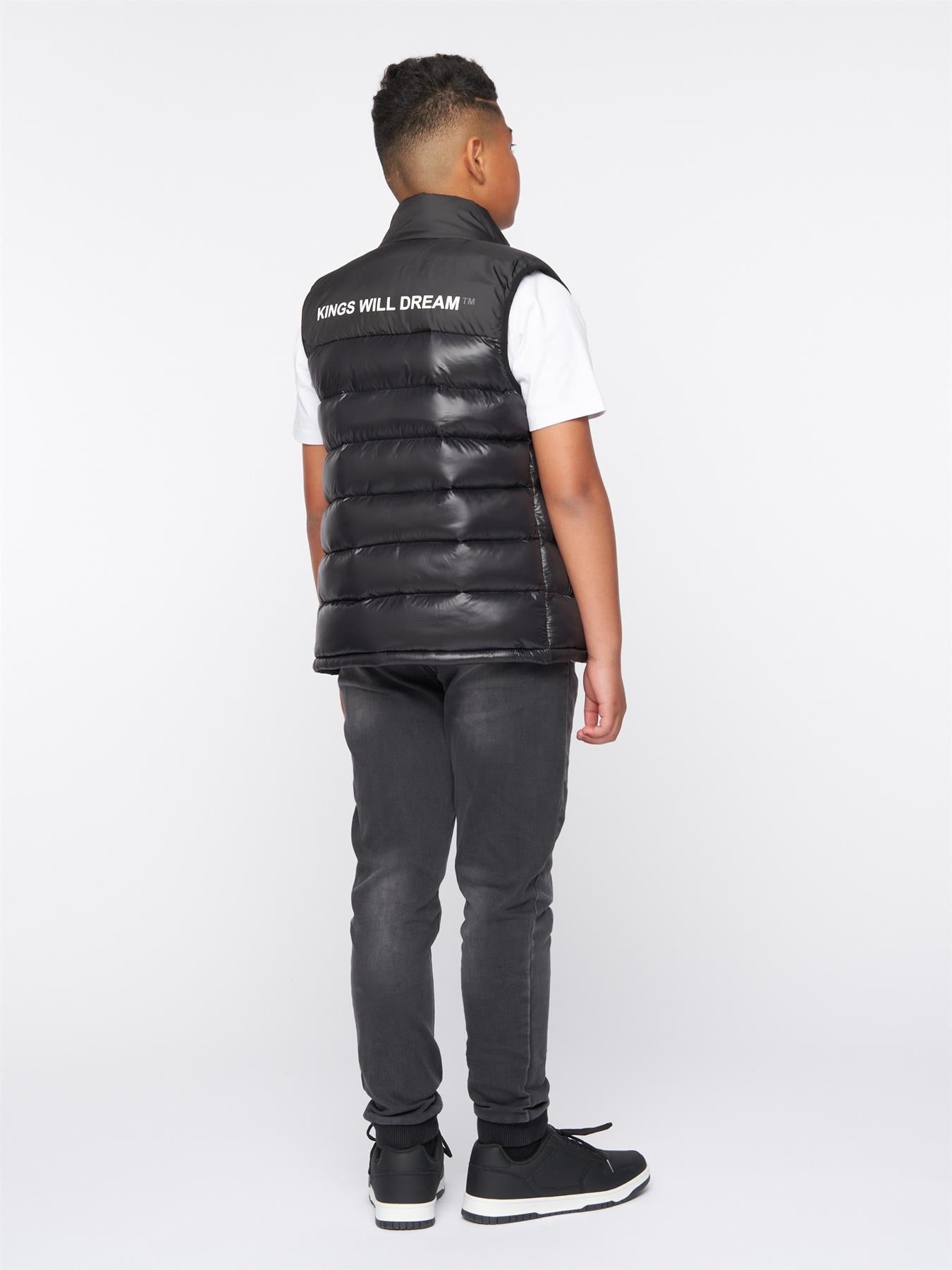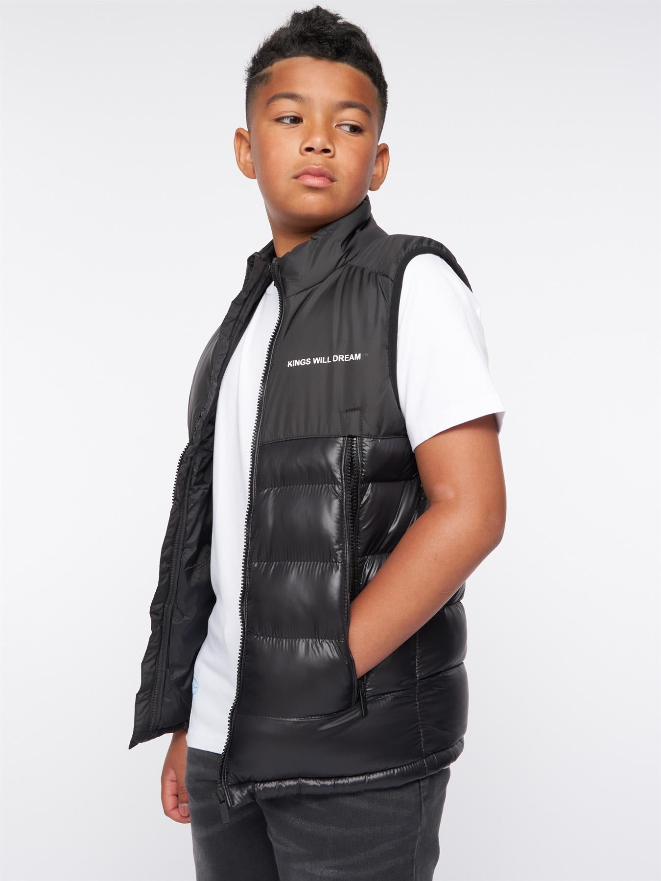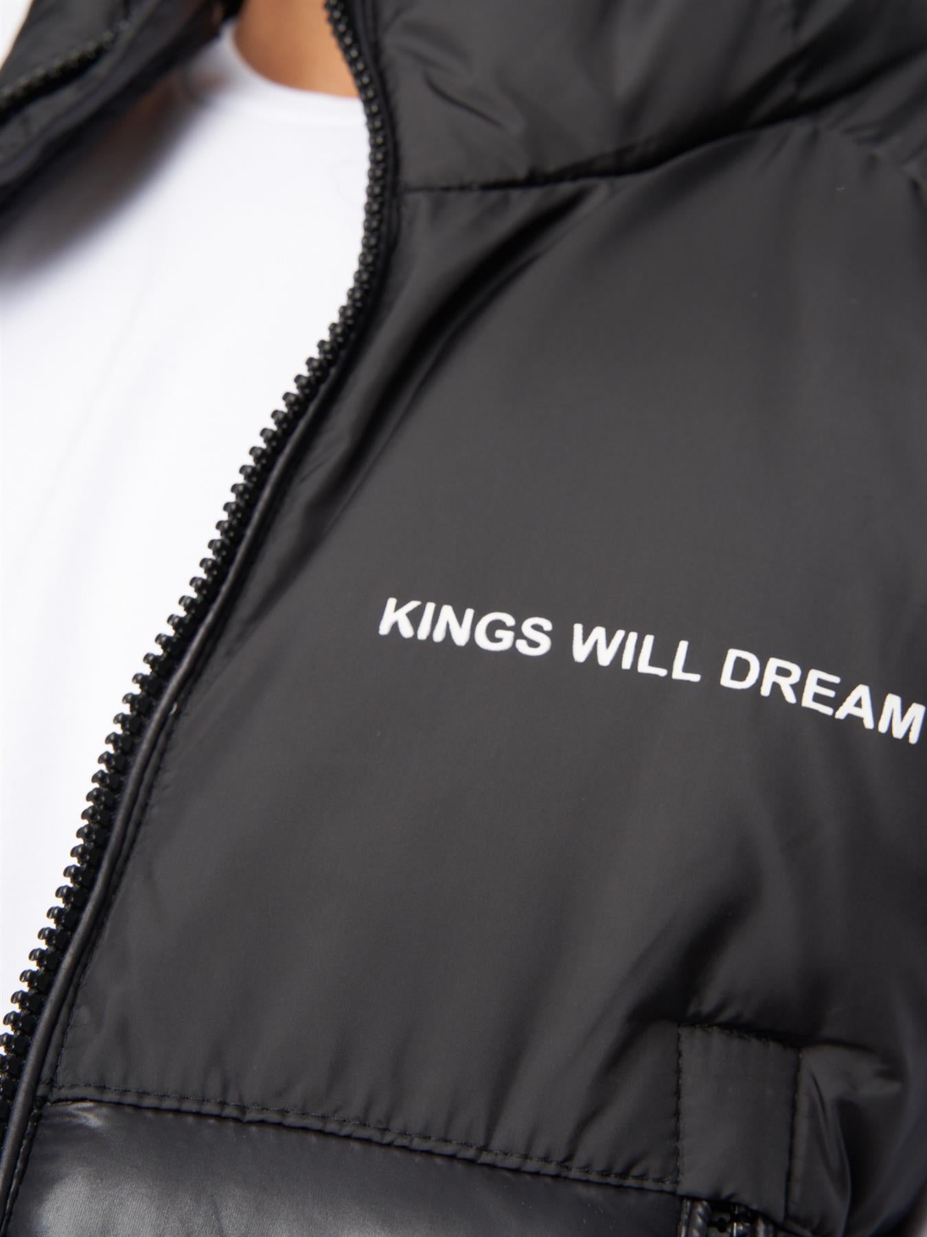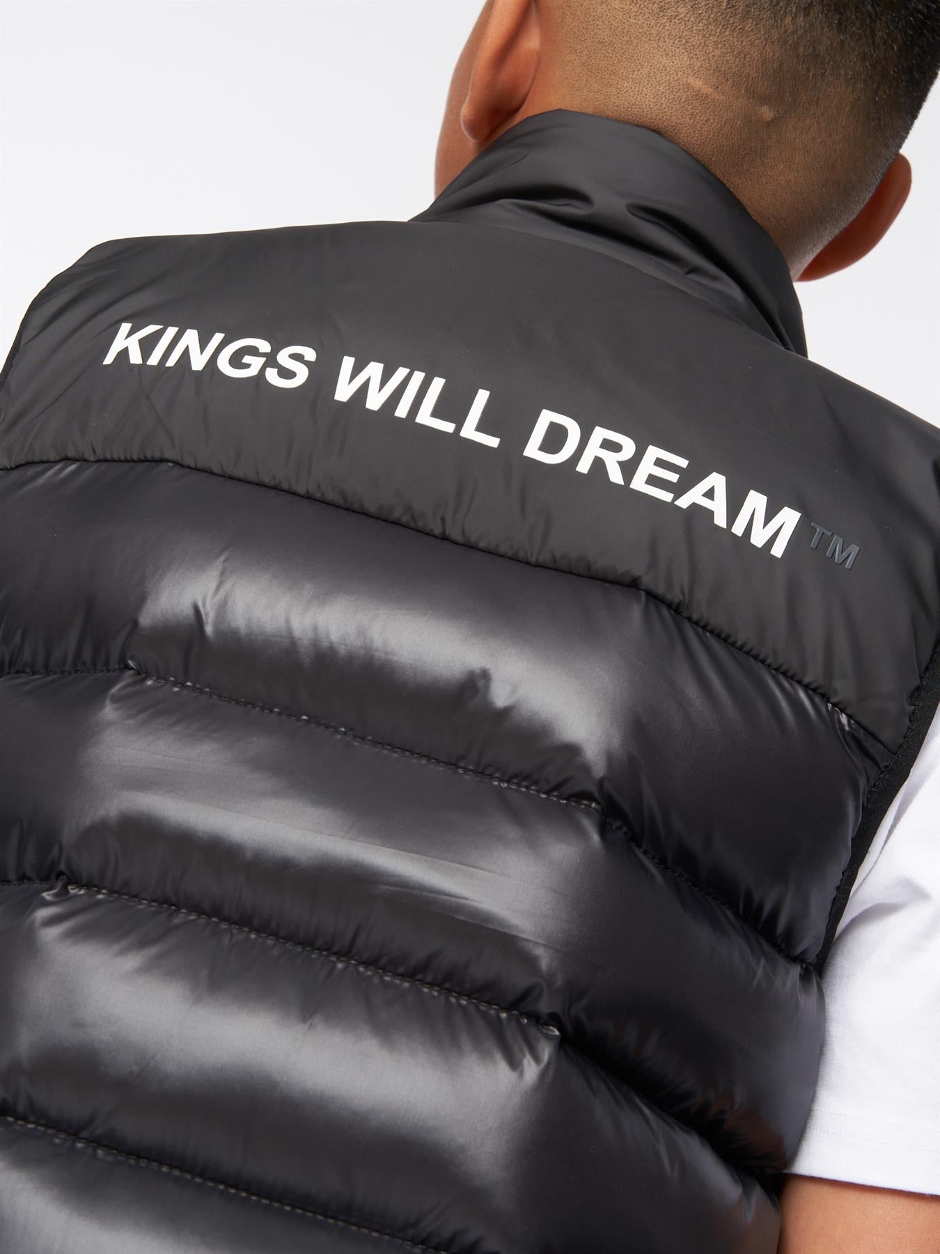 A striking half shiny fabrication and cosy padded warmth await the wearer of this toasty gilet. With a full zip front that fastens right up to the chin, secure zip fastening spacious pockets to safely stash away your tech, keys and wallet, and reflective Kings Will Dream branding to chest and back. This product is 100% Polyester (body) with 100% Polyamide filling. Body100% Polyesterlining100% Polyamidefilling