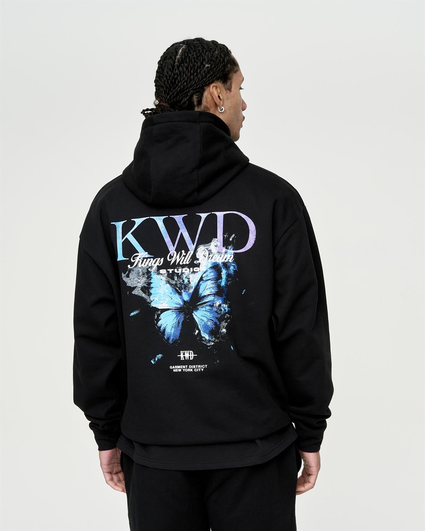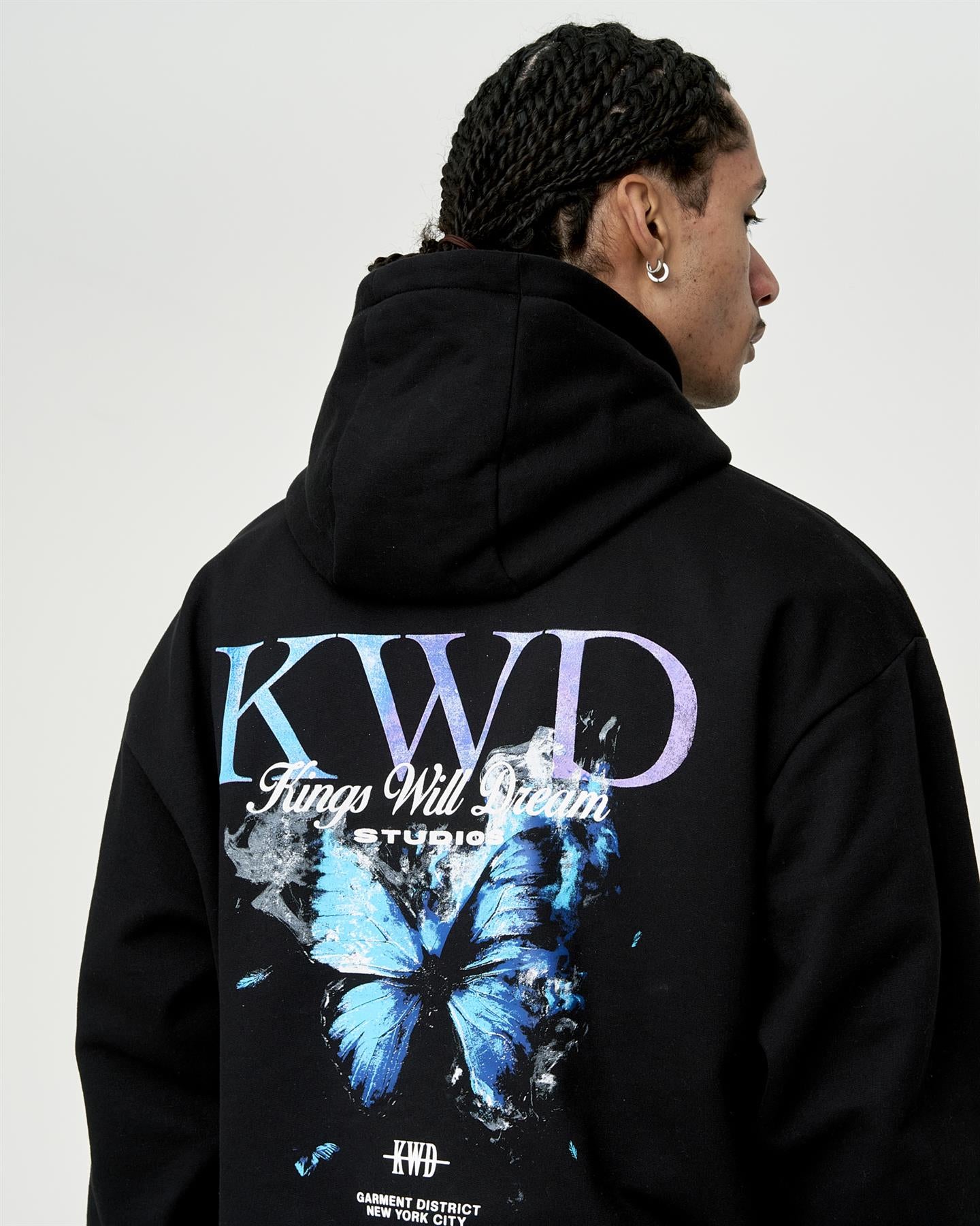 Introducing the Studio Butterfly Hoodie , a men�s cotton brush back hoody with a three-piece hood. Designed with a slightly oversized fit and drop shoulders, featuring a photographic print with raised puff print and embroidered logo on the chest. Explore more from the collection here.
