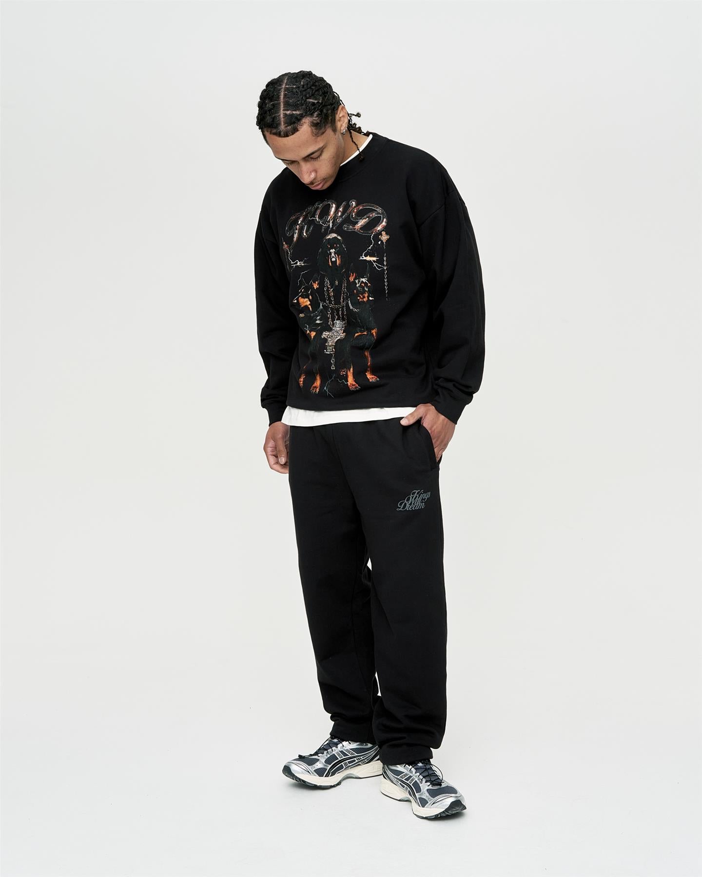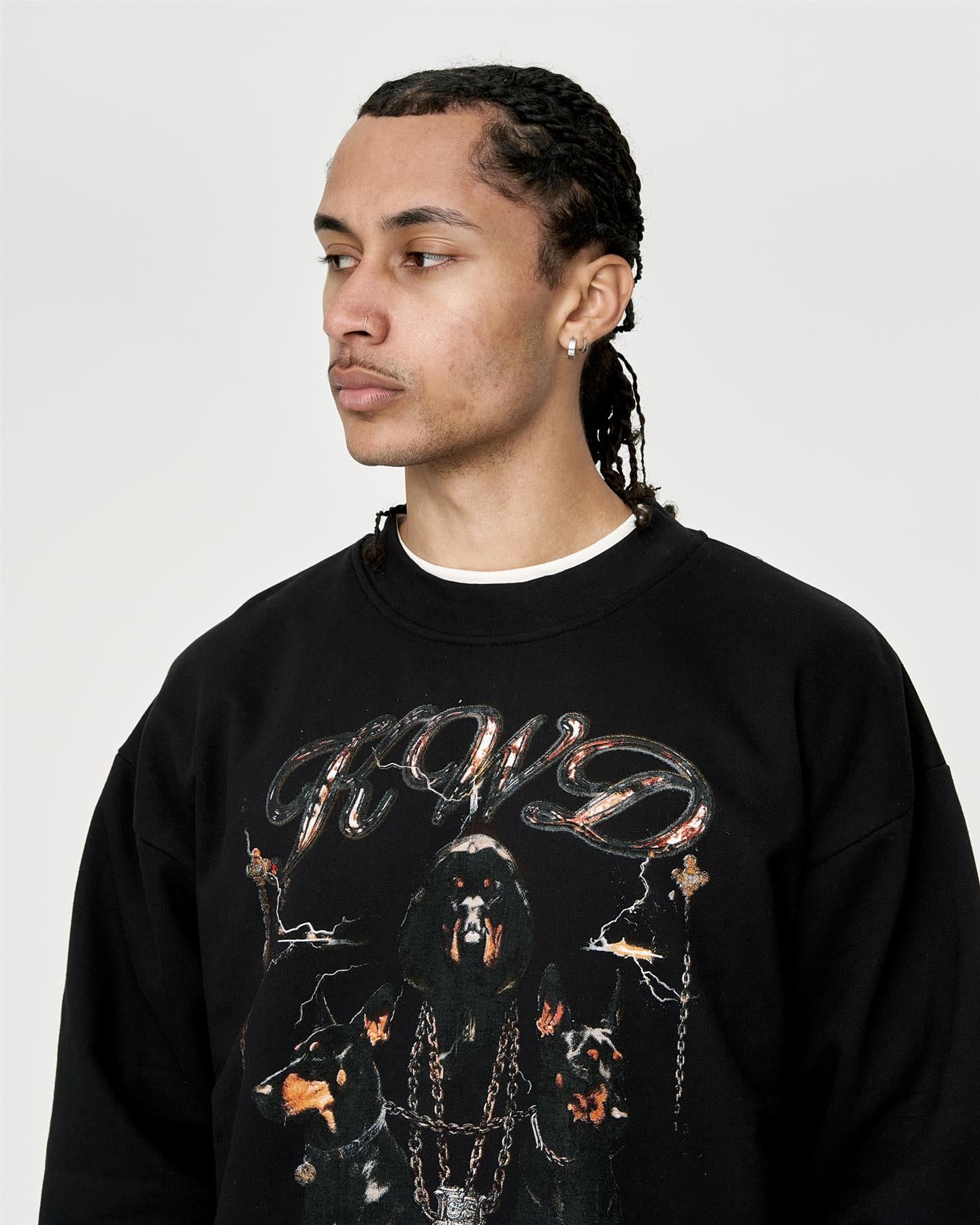 Introducing the Studio Dogs of Sin Crew Sweat , a men�s cotton brush back crewneck sweatshirt with deep neck rib. Designed with a slightly oversized fit and drop shoulders, featuring a photographic print with embroidered logos at the back neck and sleeve. Explore more from the collection here.