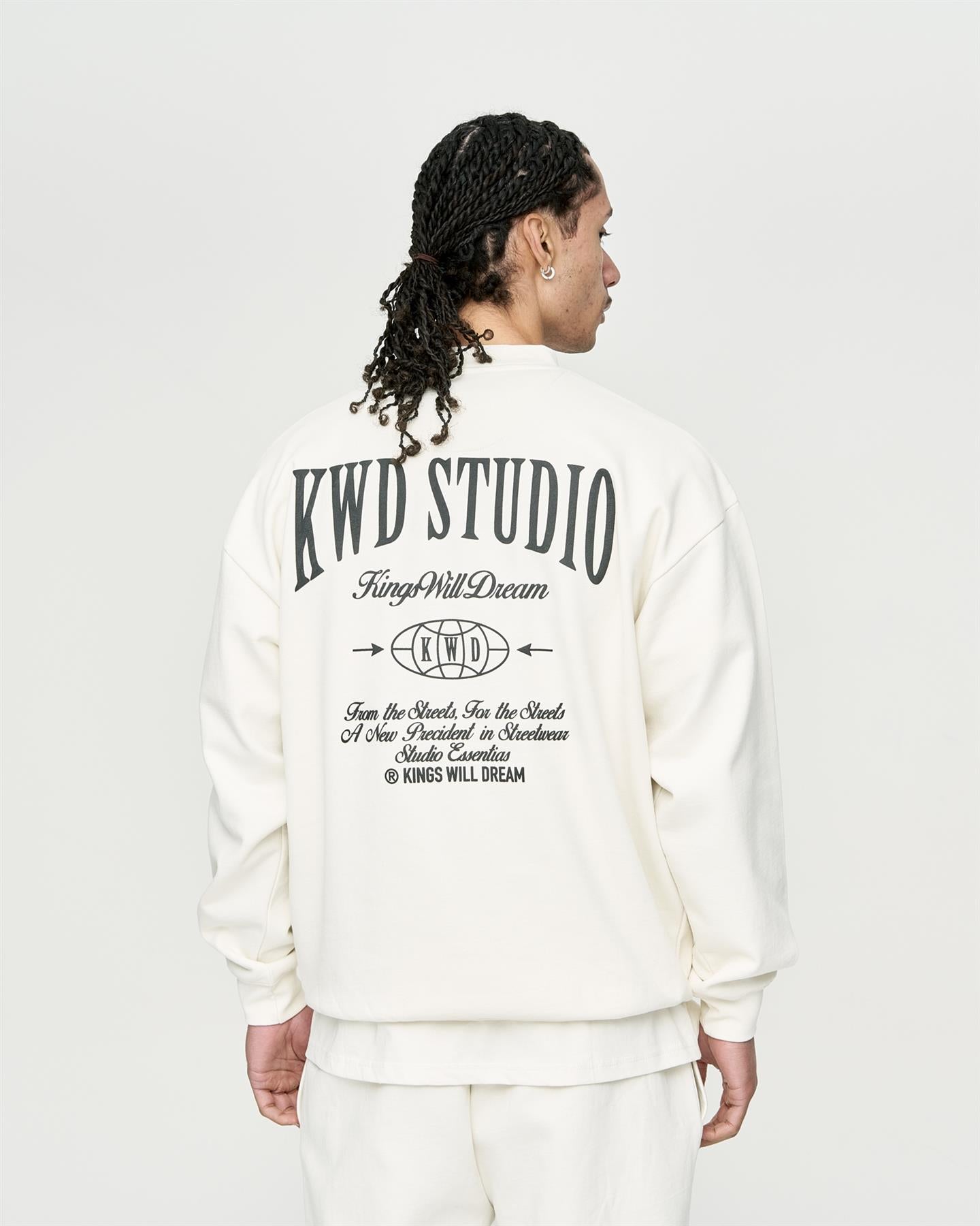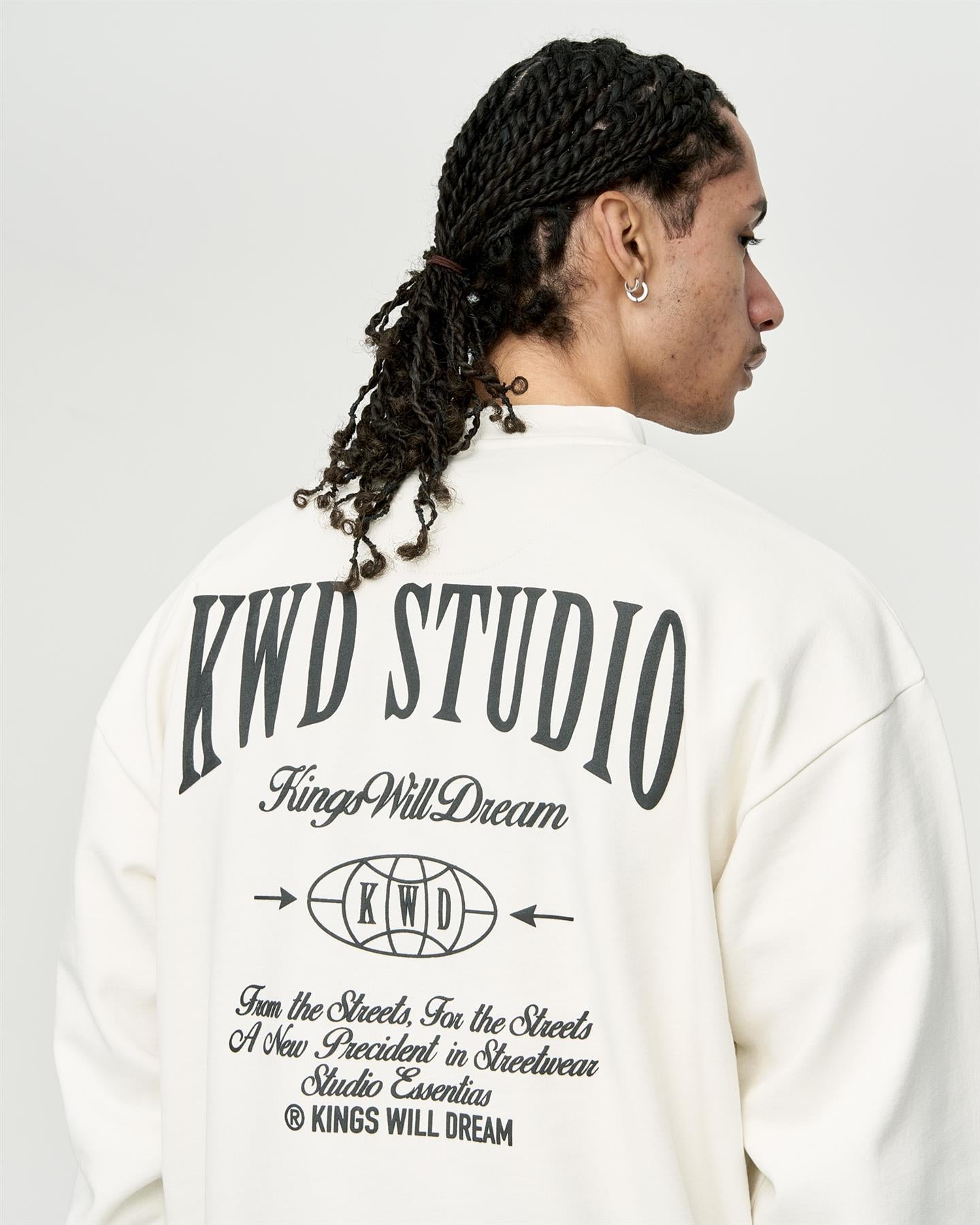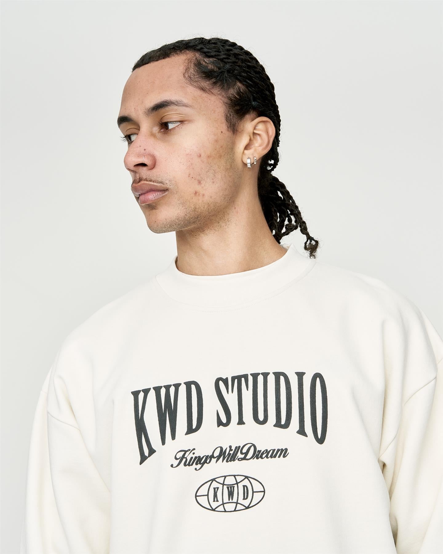 Introducing the Studio Studios Crew Sweat, a men's cotton brush back sweatshirt with oversized comfort. Featuring raised puff prints at the chest and back, finished with an embroidered logo at the hood. Explore more from the collection here.