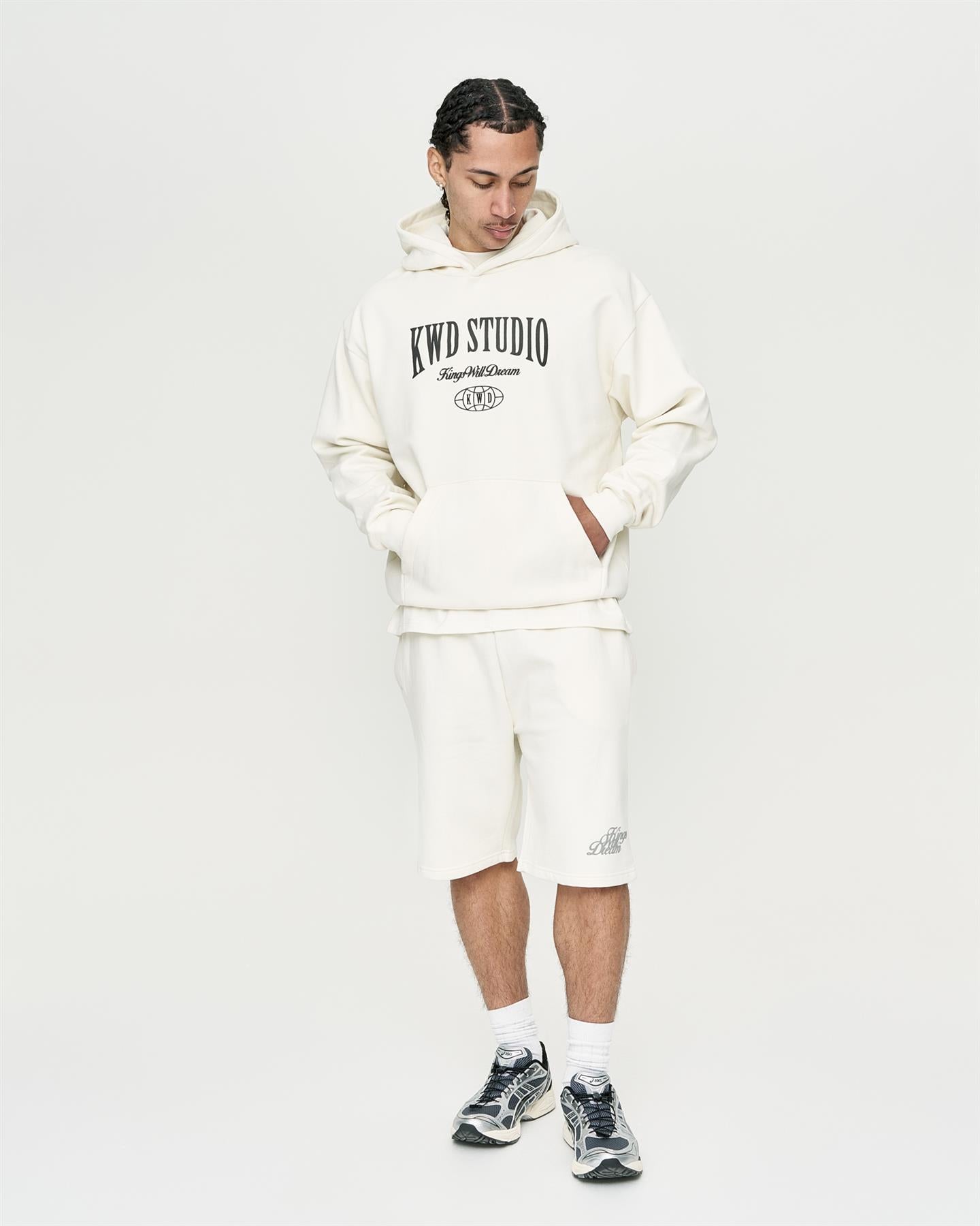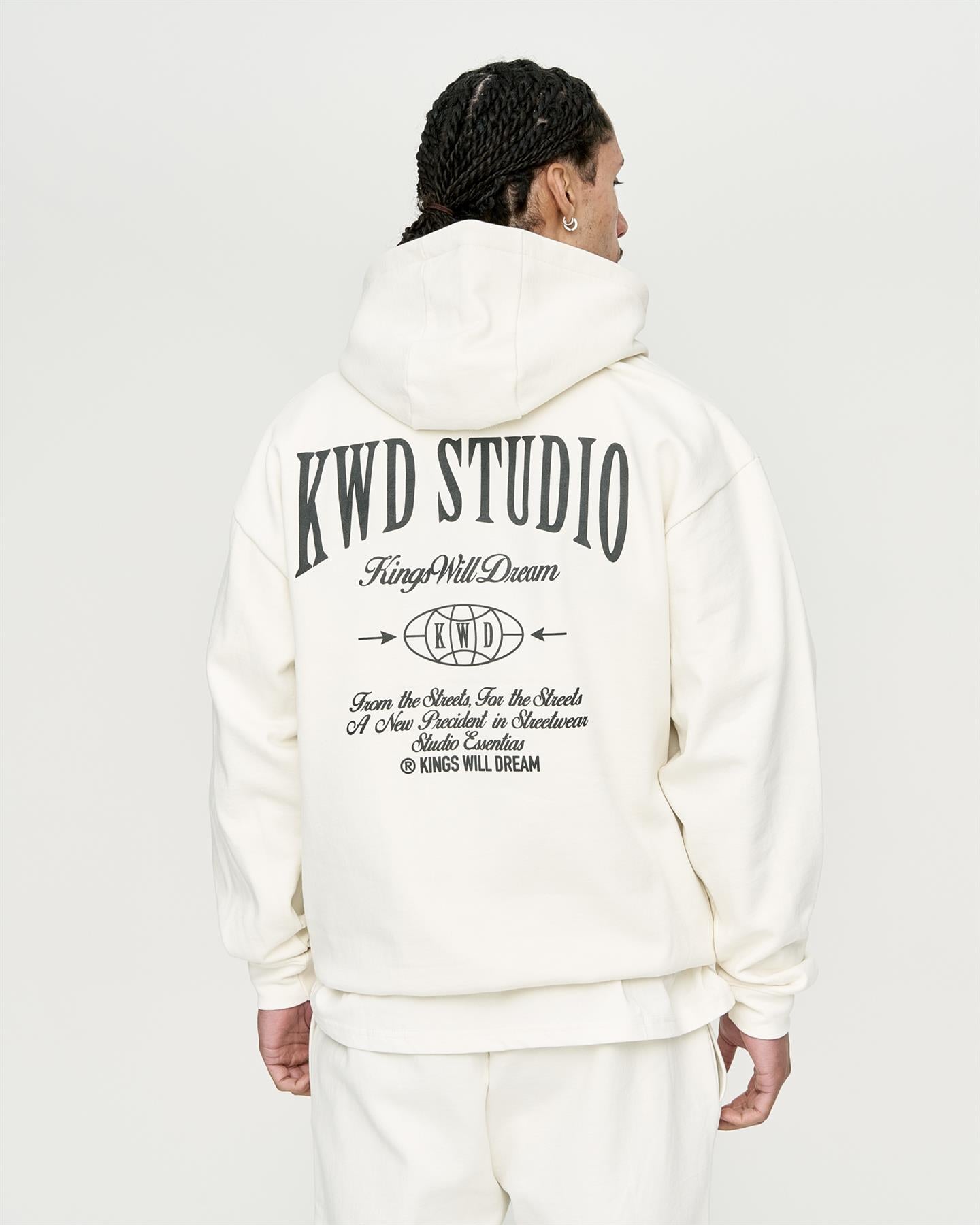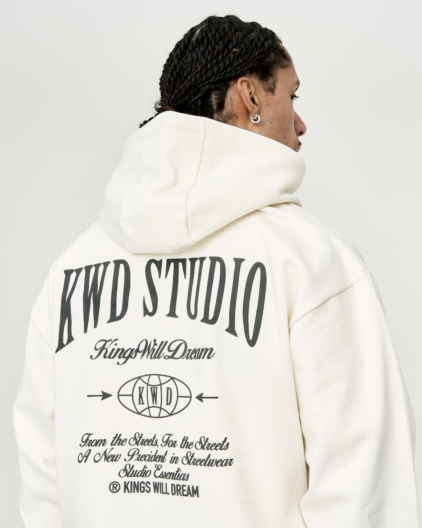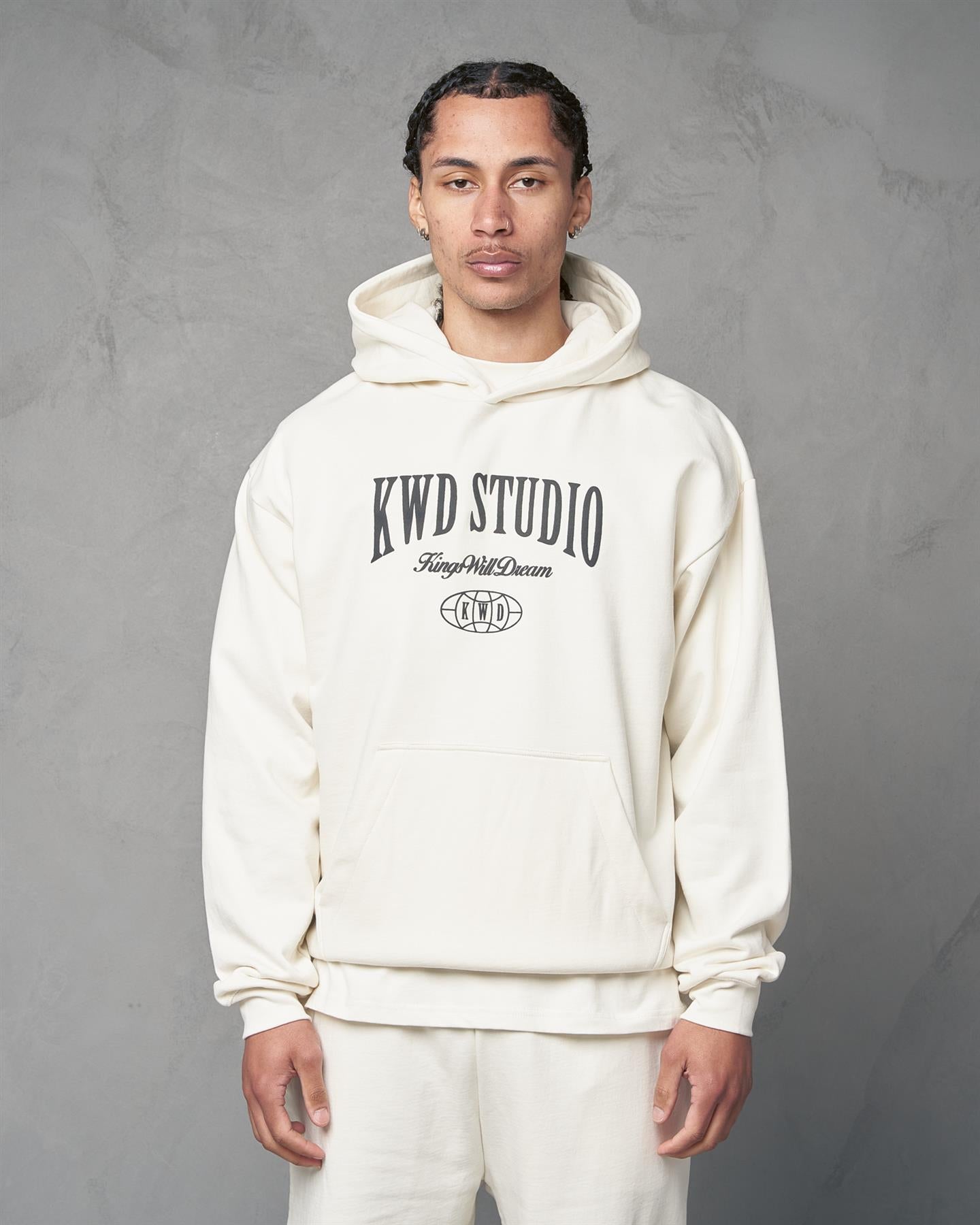 Introducing the Studio Studios Hoodie, a men's cotton brush back hoodie with a three-piece hood. Features oversized comfort, raised puff print at the chest and back, and embroidered logo at the hood. Explore more from the collection here.